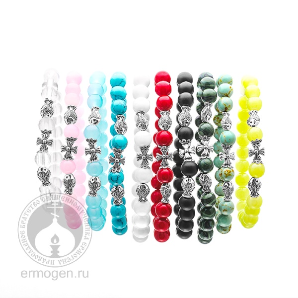 Православные браслеты из камня пользуются большой популярностью у верующих женщин. Они могут использоваться в качестве чёток из 20 бусин или как красивое украшение на руку. Браслеты выполнены из разноцветных минералов – агата и кварца, украшены металлическим крестиком и двумя рыбками – древними христианскими символами, обозначающими Христа. Наличие резинки в изделии делает его безразмерным – браслет подойдёт на любую руку. В нашем интернет-магазине можно купить браслеты из камня с крестиком оптом и в розницу.
