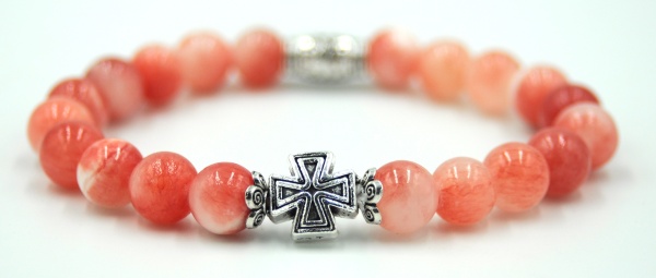 Браслет/четки оникс розовый 20 зерен d=8мм.