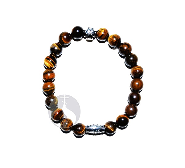 Тигровый глаз — полудрагоценный камень горной породы, Он имеет красивую золотисто-жёлтую или золотисто-коричневую окраску и шелковистый отлив. Цвет тигрового глаза обусловлен включениями гидроокислов железа. Чётки в православии предназначены для подсчёта произнесённых молитв.