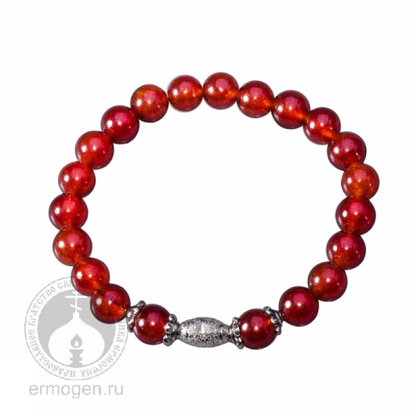 Браслет из агата и кварца на 30 бусин может использоваться как чётки для подсчёта молитв. Десятки на браслете разделены металллическими крестиками. Красивое изделие может служить хорошим подарком верующему православному человеку.