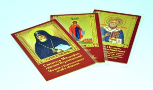 Ламинированные иконы в упаковке из 50шт. включают известные иконы Пресвятой Богородицы и святых. Изделия имеют удобный формат календаря, что позволяет хранить их в бумажнике, визитнице или кармане сумки. Из-за небольшого размера и лёгкости, иконку можно взять с собой в дорогу. Имея рядом освящённый образ, его владелец сможет в любую минуту обратиться с молитвой к Господу,