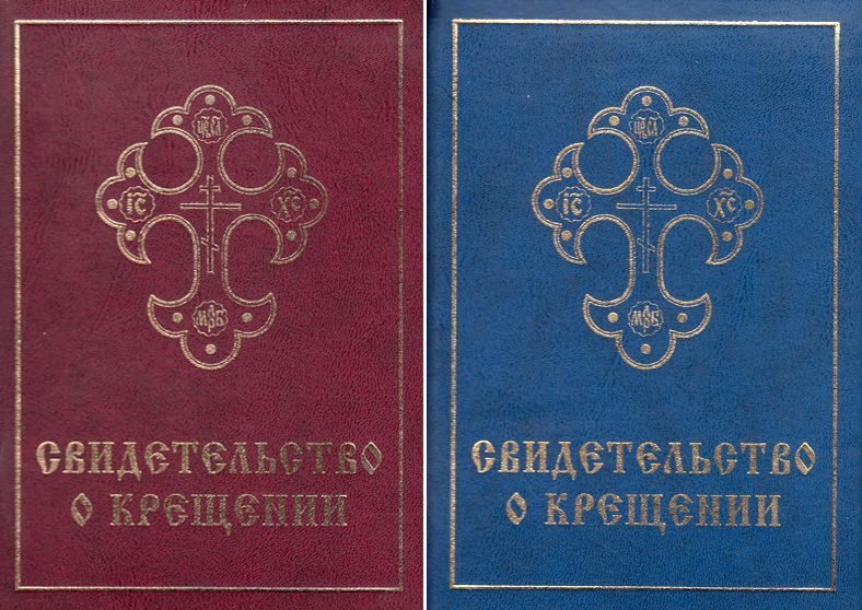 Свидетельство о Крещении в твердом переплете – официальное свидетельство, предоставляемое Русской Православной Церковью с печатью храма и подписью священнослужителя, совершившего Таинство Крещения. В нем указывается информация о том, над кем совершено Таинство, о крестном отце и крестной матери, о месте и времени Крещения.