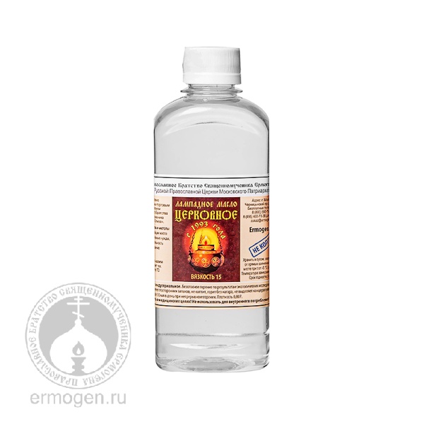 Лампадное масло «Церковное» белое минеральное для православных храмов и домашнего обихода. Отличается высоким качеством, прозрачное, не имеет запаха, не дает нагара и копоти, а также не выделяет вредных веществ при горении и экономично расходуется. Подходит для использования в холодных условиях благодаря низкой температуре замерзания.