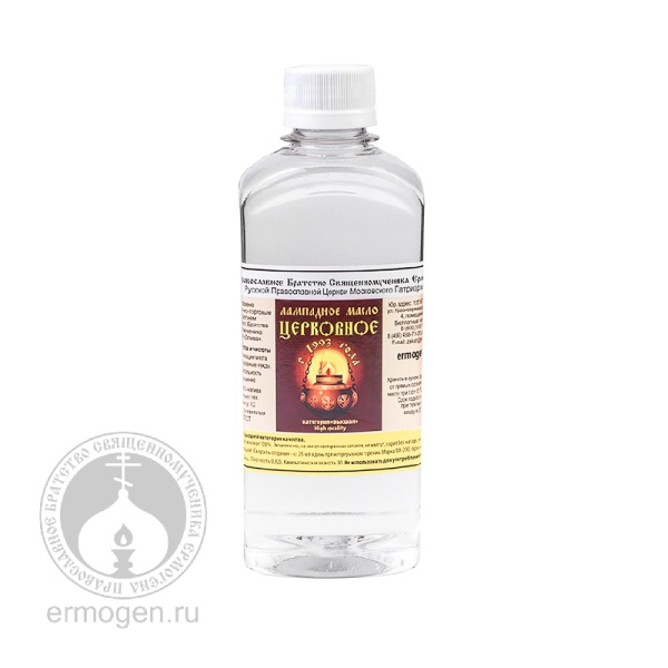 Масло лампадное «Церковное» вязкость 20 [вазелиновое] бутылка 0,33 л производства Православного Братства Ермогена арт. 01-01-10-01