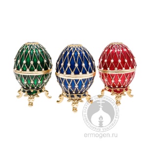 Бренд «Яйца Фаберже» известен всему миру как обозначение драгоценной и неповторимой коллекции ювелирных изделий в форме яйца с сюрпризом, выполненных по замыслу ювелира Карла Фаберже для царской семьи [с 1885 по 1917 гг]. Каждое яйцо представляет собой шедевр ювелирного искусства. В настоящее время подлинные произведения Фаберже стали бесценными экспонатами музеев, однако сама идея создания подобных изделий нашла своё продолжение в современном производстве сувениров. Приобрести этот красивый и оригинальный предмет можно по весьма доступным ценам. Сувенир «Яйцо Фаберже» по-прежнему может послужить лучшим подарком к празднику Пасхи. Яйцо Фаберже выполнено в трех цветовых вариантах.
