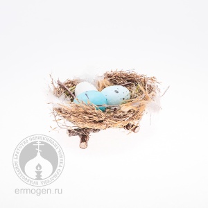 Сувенир «Гнездо с яйцами» является традиционным пасхальным украшением. Особенную популярность фигурки курочек и цыплят с яйцами получили в Европе. Считается, что цыплята и курочки – символы весны и новой жизни.