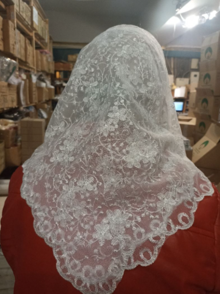 Кружевной платок достаточно плотный, не сползает с головы.