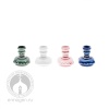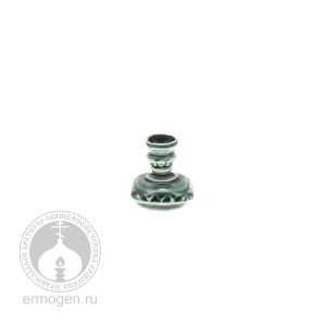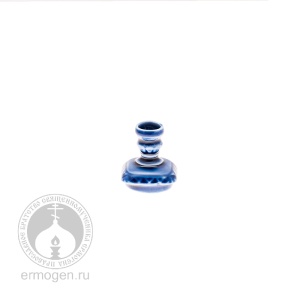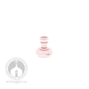 Керамический подсвечник с устойчивым основанием представлен в четырёх цветах. В наличии розовый, белый, синий, зелёный. Керамические изделия данной мастерской выполнены по технологии фаянса, в стиле «Кузнецовская майолика». Для продукции характерны качественный белый состав керамики, классические орнаменты, свойственные русской и византийской православным традициям. Подсвечник подходит для стандартной церковной свечи.