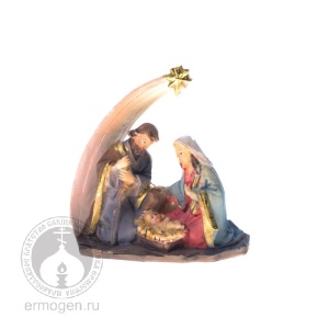 Основным сюжетом композиции являются Мария, Иосиф и Иисус Христос, лежащий в яслях, над ними рождественская звезда. Вертеп украшен позолотой, которая придает особый вид.