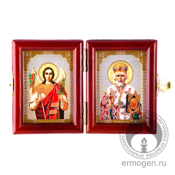 Складень дорожный двойной «Николай Чудотворец - Архангел Михаил» [58*84мм] арт. 05-06-18-08