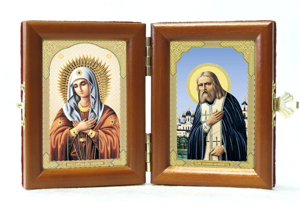 Традиционный православный складень представляет собой «дорожную» икону, состоящую из двух или трех складывающихся створок. Он удобен в использовании, его легко поставить на любую поверхность или взять с собой в путешествие. Святому Серафиму Саровскому принято молиться в тяжелых жизненных ситуациях, для достижения душевного мира. Великий преподобный – один из покровителей русского иночества. Икона Богородицы, именуемая «Умиление» – чудотворная святыня христианского мира. Перед ней возносят молитвы к Пречистой Деве, прося Её о заступничестве, смягчении жестоких сердец и ниспослании мира.