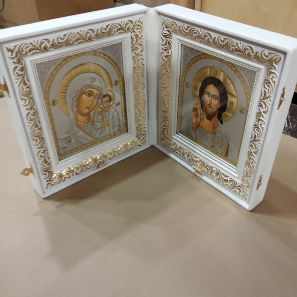 Складень ручной работы 22*25см.белый жаккард,два замка,стекло(Арт.54348)(Беликов)