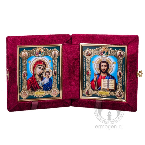 Складень с объемными иконами МАЛЫЙ [бархат 100х120мм.]