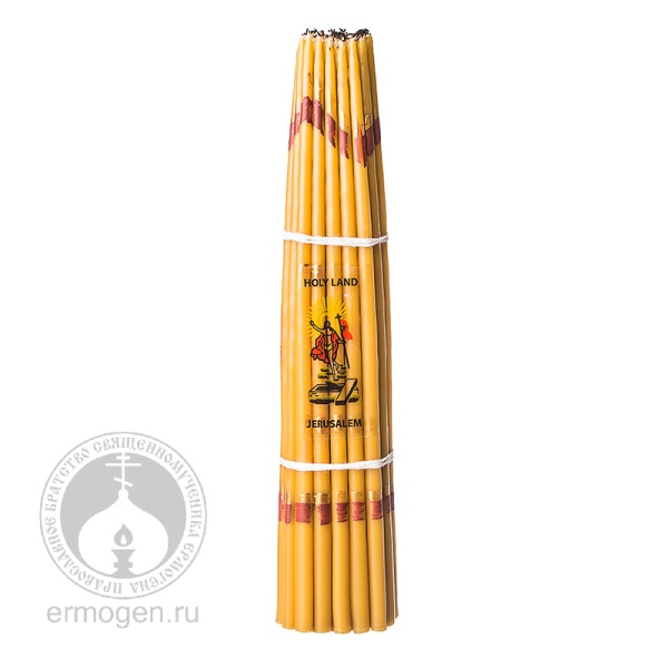 Иерусалимскими называют свечи особой формы, которые используются на богослужении в храме Гроба Господня в г. Иерусалиме.Такие свечи зажигаются в момент ежегодного схождения Благодатного Огня в Великую Субботу перед Пасхой. Наш магазин предлагает сувенирные свечи по типу «Иерусалимских», которые являются копией традиционных Иерусалимских свечей. Товар изготовлен из обычного парафина. Продаётся как поштучно, так и коробками.