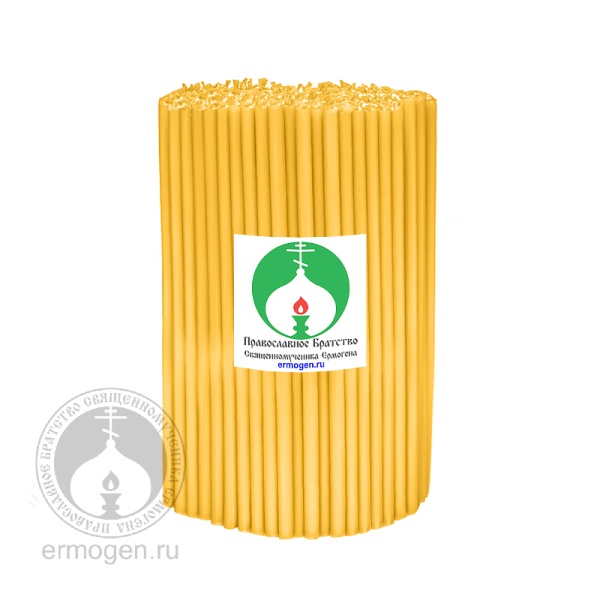 Церковные свечи по традиции всегда делались из пчелиного воска. Его пластичность служила символом искренности и послушания человека перед Богом. С возрастанием потребности в церковных свечах были разработаны менее дорогостоящие способы их производства. Православное Братство священномученика Ермогена производит полувосковые свечи, не уступающие по своим характеристикам восковым аналогам. Наши свечи не издают треска при горении, не коптят, не крошатся и не текут. Состав сырья соответствует ГОСТу, включает натуральный пчелиный воск, пищевой парафин марки «П-2», стеарин – вещество, стабилизирующее горение свечи на сквозняке и в жарком помещении, 100% х/б фитиль, специально подобранный под каждый номер свечи. Продукция имеет сертификат Ростеста и соответствует Уставу РПЦ.