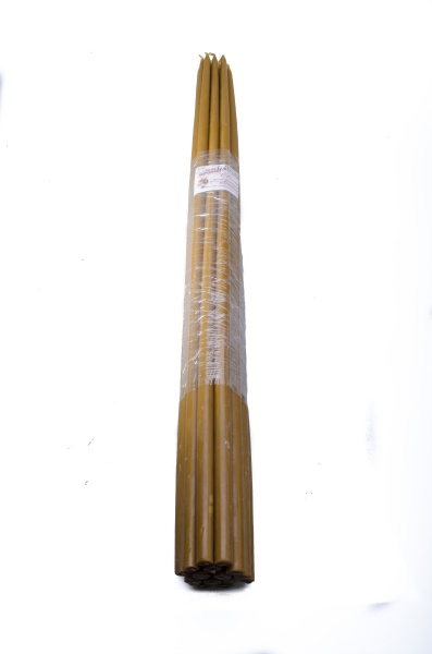 Церковные свечи изготовлены из 100% отечественного воска с натуральным х/б фитилем. Восковые конусные свечи горят долго, ровно, издавая приятный медовый аромат. Цвет свечи, как и цвет натурального воска может колебаться от желтого до светло-коричневого цвета. Особенность свечей - их конусная форма обусловлена технологией изготовления - макание. Перед такой свечей молиться - в радость, поститься - в благость.