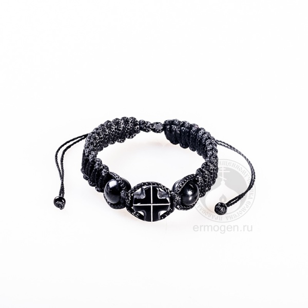 Чёрный плетёный браслет украшен крестом с полоской из натурального агата. Браслет имеет универсальный размер, который регулируется с помощью завязок на изделии. Молитва «90 псалом» защищает православного верующего от опасности и всякого зла.