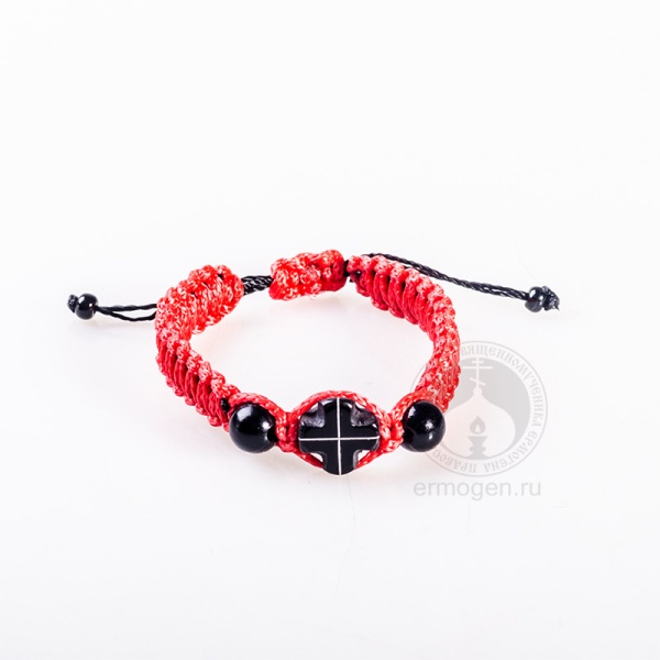 Красный плетёный браслет из текстильной тесьмы отличается вставкой-крестом из натурального агата. Размер можно отрегулировать специальными затягивающимися шнурками. Браслет содержит «90 псалом» - молитву, способную защитить человека в опасности.