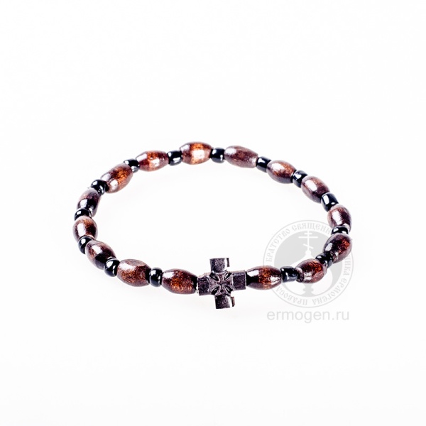 Браслет состоит из деревянных самшитовых бусин и металлического крестика. Благодаря резинке украшение подходит на любую руку. Изящный браслет обязательно понравится любой православной девушке или женщине.