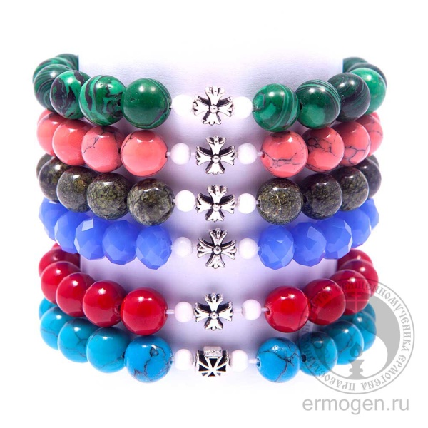 Православный браслет из прессованного агата представлен в разных цветах. Бусины и металлический крестик нанизаны на резинку, что позволяет регулировать размер украшения. Изящный и универсальный браслет понравится как молодым девушкам, так и женщинам.