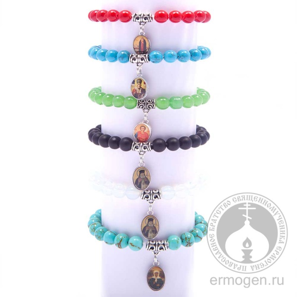 Браслеты выполнены из полудрагоценных минералов агата и кварца разных цветов. К украшениям прикреплены подвесные иконки с ликами известных православных святых. Молитва «90 псалом» защищает владельца от опасности и внезапной смерти.