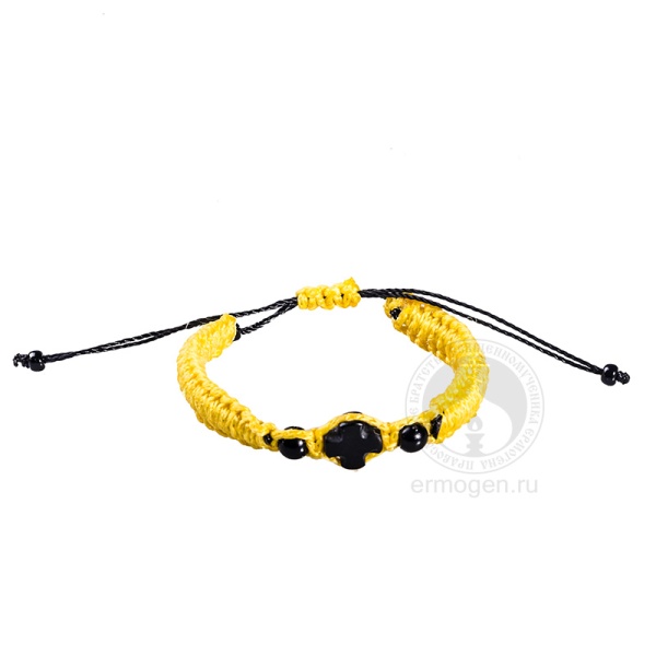 Детский плетёный браслет сделан из жёлтой текстильной тесьмы и затягивается на шнурок. Православный крестик в центре изделия и молитва «псалом 90» вместе с родительской молитвой помогут сохранить ребёнка от опасности и всякого зла.