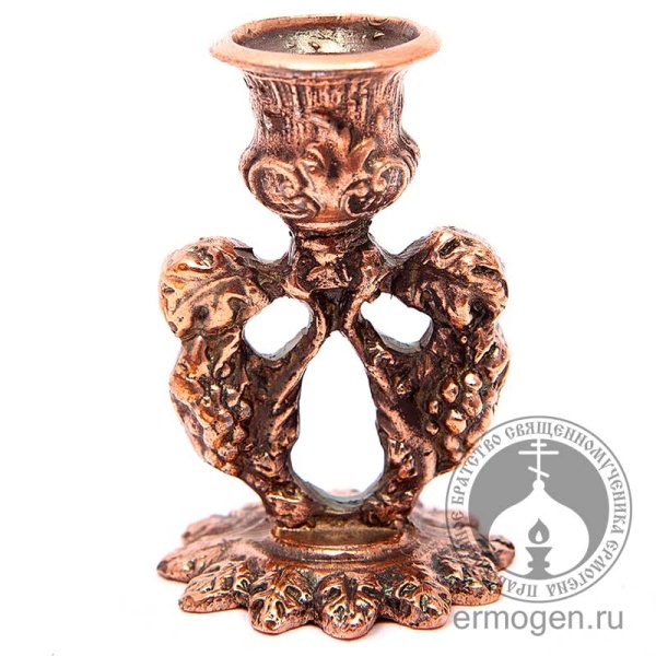 Подсвечник «Лоза» выполнен из металлического оловянного сплава в технике фигурного литья с бронзовым покрытием или без него. Благодаря своему составу изделие не подвержено воздействию низких или высоких температур, процессу коррозии. Устойчивый и удобный металлический подсвечник в форме листьев виноградной лозы может служить прекрасным подарком к празднику верующему человеку.