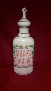 Сосуд плоский «Святая вода» [бел. гл., красные птицы, ХВ, золото]