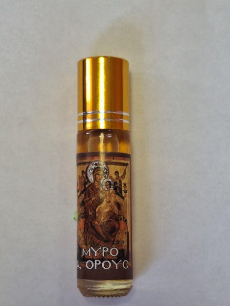 Церковное благовоние Миро с иконой ПБ Всецарица, Афон [8 мл.]