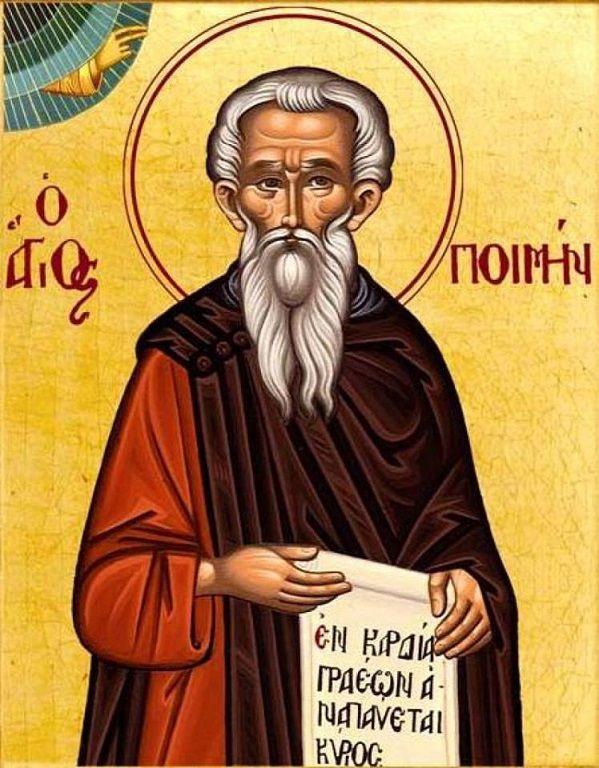 Преп. авва Пимен Великий появился на свет ок. 340г. от Р.Х. в земле Египетской. Он и два его родные брата Анувий и Паисий вступили в ряды монашеской братии одного из монастырей, находившихся в Египте. Все трое братьев несли строжайший подвиг уединения: как повествуется в их житии, однажды их родная мать посетила обитель, дабы повидаться с сыновьями, но те остались в своих кельях и не открыли ей дверей. Женщина долгое время проливала слёзы возле дверей в их кельи, и тогда преп. Пимен из-за закрытой двери возвестил ей, что если она перенесёт временную разлуку со своими чадами, то в грядущей жизни они, по неизреченному человеколюбию Божию, встретятся. После этих его слов женщина во смирении вернулась в свой дом. Преп. Пимен пребывал в подвиге сурового поста, как правило, неделями не принимая вовсе никакой пищи. При этом своих учеников он наставлял принимать пищу ежедневно, однако умеренно, не пресыщаясь. Преподобный достиг великого смирения – нередко, воздыхая, он произносил: «Я буду брошен на то место, куда будет брошен сатана!».