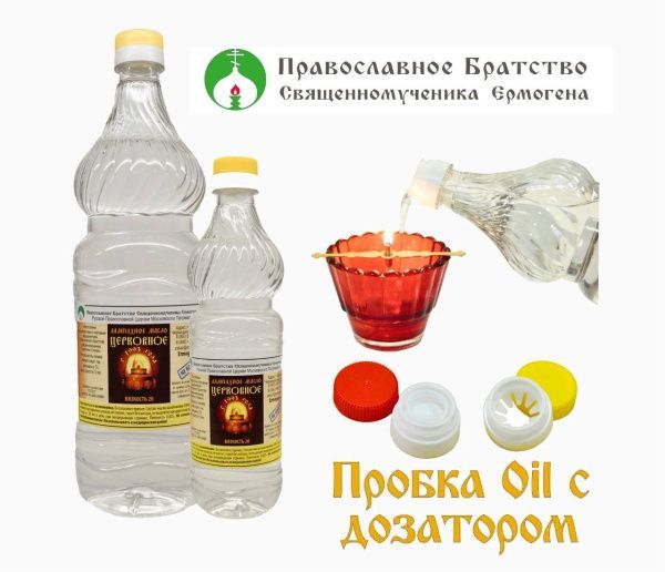 Бутылка лампадного масла Братства священномученика Ермогена теперь комплектуется с крышкой-дозатором OIL, предотвращающей пролив масла и регулирующей поток!