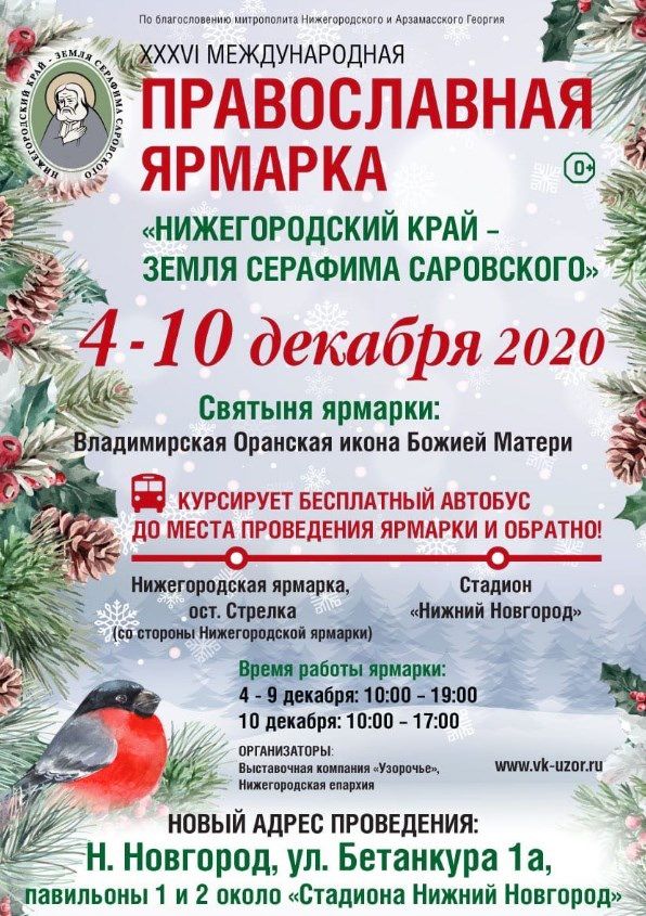 С 4 по 10 декабря до православной ярмарки и обратно будет ходить бесплатный автобус по маршруту: остановка «Стрелка» (ул. Советская, со стороны Нижегородской ярмарки) - остановка «Стадион Нижний Новгород».
