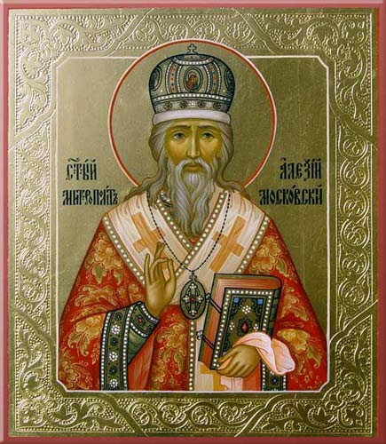 Будущий первосвятитель Алексий (мирское имя – Елевферий) родился в 1292г. (по другой информации – в 1304г.) в Москве. По линии отца он происходил из рода черниговских бояр Бяконтов, и семья его, переехав в Москву из Чернигова, прочно утвердилась в московской боярской среде и заняла в ней далеко не последнее место. С отроческих лет будущий митрополит был призван к духовному служению Самим Господом, Который явился 12-летнему Елевферию, в то время занимавшемуся птицеловством, в сонном видении и дал ему обещание сделать его «ловцом человеков» (теми же словами, которыми некогда, во время Своей земной жизни, призвал рыбачивших на берегу будущих апостолов Симона (Петра) и Андрея Первозванного). После этого видения отрок полюбил уединение и частое посещение богослужений в храме, а в возрасте примерно 15-и лет изъявил твёрдое желание принять иноческий постриг. Пострижение это совершилось в 1320г. в московском Богоявленском монастыре, где будущий первоиерарх провёл последующие 20 лет в строжайшем воздержании и других монашеских подвигах под духовным водительством опытнейших старцев обители – Геронтия и Стефана (брата преп. Сергия Радонежского). Последующие 12 лет, с благословения митрополита московского и всея Руси Феогноста, будущий первосвятитель провёл уже вне стен обители, в звании помощника владыки исполняя должность заведующего церковными судебными делами. В 1350г. он был посвящён владыкой во епископа и получил назначение на Владимирскую кафедру, и ещё при жизни владыки считался его будущим преемником. После кончины владыки Феогноста, произошедшей в 1354г., святитель Алексий вступил на архипастырское служение уже на Московской кафедре, откуда уже через 2 года был вынужден ехать в Константинополь к Вселенскому Патриарху Каллисту с целью устранения церковных нестроений (связанных с претензиями на власть некоторых архиереев), буквально раздиравших в то время Русскую Церковь. Спустя год его пребывания в Константинополе, Вселенский Патриарх дал наконец святителю Алексию титул «всечестнаго митрополита и экзарха» Русской Церкви с правом быть «архиепископом Киева и великой России». По возвращении из Константинополя святитель был встречен в Москве с ликованием и приступил к своему архипастырскому подвигу, который он должен был сочетать также с государственной и дипломатической деятельностью, с большим воодушевлением. В те суровые времена Святую Русь (как и Святую Русскую Церковь) терзали многочисленные смуты и всяческие нестроения. Святителю, предпочитавшему находиться в ровных дипломатических отношениях с Ордой, часто приходилось не только ездить с подношениями в Орду, но и совершать многочисленные поездки в Киев и разные другие уголки России, иногда – с риском для жизни, для устранения разного рода междоусобиц и умирения князей (в особенности – тверских), не желавших признавать власть Московского княжества над остальными. Кроме того, имелась постоянная угроза с севера – многочисленные походы литовцев на Московскую Русь с целью сбора средств на военные действия Литвы, воевавшей тогда с германскими рыцарями. Надо особо отметить тот факт, что святыми молитвами русского архипастыря была чудесным образом исцелена от слепоты супруга ордынского хана, именем Тайдула, которая в благодарность за это подарила святителю землю в стенах м