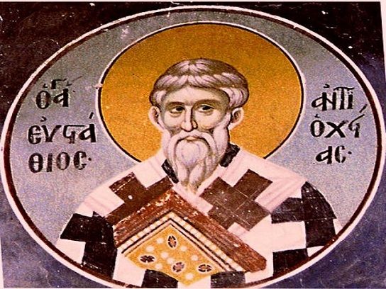 Будущий святитель Евстафий родился во 2-й половине III века в городе Сиде – одном из крупнейших городов тогдашней малоазийской области Памфилии. Сначала он был поставлен Церковью епископом г. Берии, где был очень почитаем паствой и клиром, по ходатайству которых отцами I Вселенского Собора, состоявшегося в 325г. по Р.Х., где он председательствовал, он был возведён на управление Антиохийской кафедрой. Когда на Востоке стала распространяться ересь арианства, адепты которой не считали Сына Божия Иисуса Христа Единосущным Богу Отцу, будучи светски и духовно прекрасно образован, святитель Евстафий ревностно встал на защиту чистоты правой Веры и на том же I Вселенском (Никейском) Соборе вместе с другими епископами подписал Никейский Символ Веры и строго осудил еретическое учение Ария, отлучив как самого его, так и его единомышленников от Святой Церкви Христовой. Однако вскоре, оклеветанный арианствовавшими епископами на Поместном Соборе, созванном в Антиохии, он был низложен и без всякого суда отправлен в изгнание во Фракию. Вступивший на престол после смерти своего отца, императора Константина Великого, император Констанций сам был по убеждениям арианином и всячески покровительствовал арианским епископам, потому, несмотря на то, что клевета в скором времени была открыта, святитель Евстафий так и оставался в местах ссылки (предположительно – в г. Филиппах, что находился на берегу Эгейского моря) до самой своей блаженной кончины в 337 году, пребывая в твёрдом исповедании правой Веры и продолжая из изгнания ревностную борьбу против арианства – за чистоту Православия. II Вселенский Собор, состоявшийся в 381 году в Константинополе, окончательно утвердил Никейский Символ Веры и анафематствовал лжеучение Ария. В 482г. честные мощи свт. Евстафия были с честью перенесены из г. Филипп в Антиохию.